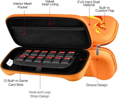 - Grand espace de rangement pratique : Une poche en filet zippée permet de ranger des accessoires comme un câble de charge, des écouteurs ou 2 Joy-Con supplémentaires. 12 emplacements sont prévus pour vos cartes de jeu préférées.