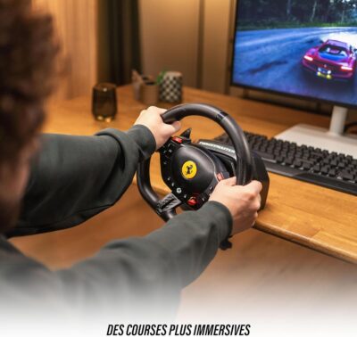 Conduisez comme un vrai pilote avec ce volant sous licence Ferrari inspiré de la Ferrari 296 GTS et immergez-vous au cœur de courses trépidantes. La technologie de retour au centre du volant et l’angle de rotation de 240° avec une résistance linéaire permettent un contrôle précis du véhicule pour prendre de meilleures trajectoires et dépasser vos opposants. Le volant et ses palettes de vitesses en simili carbone offrent une excellente prise en main pour des sensations de pilotage sportif ! Le sélecteur inspiré de l’iconique « Manettino » des Ferrari permet de jongler entre les 3 profils d’aide à la conduite (du plus réaliste au plus maniable) pour s’adapter à tous les niveaux de pilotage, que vous soyez débutant ou pilote confirmé.